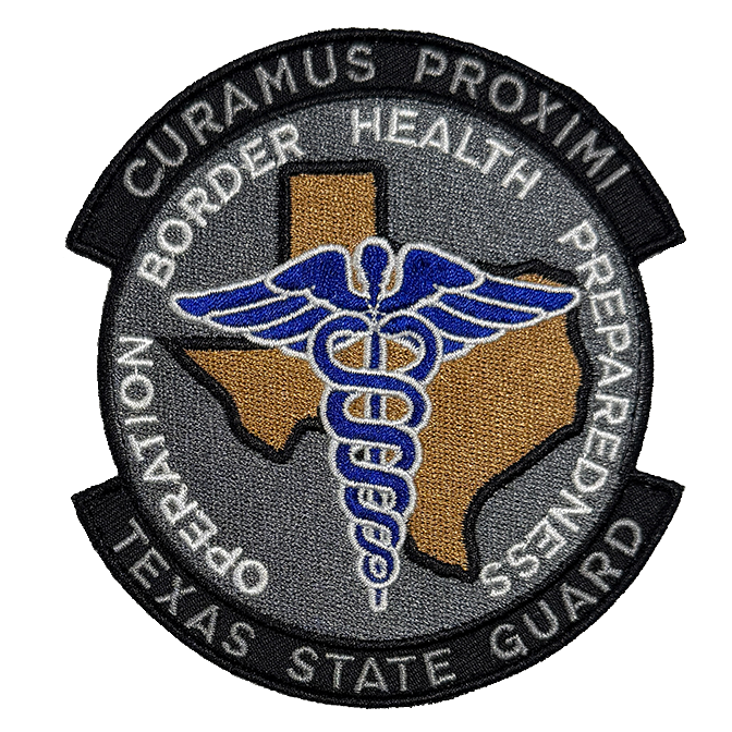 Embroidered mission patch with hook backing for the Texas State Guard annual medical mission to the Rio Grand Valley: Operation Border Health Preparedness (OBHP).