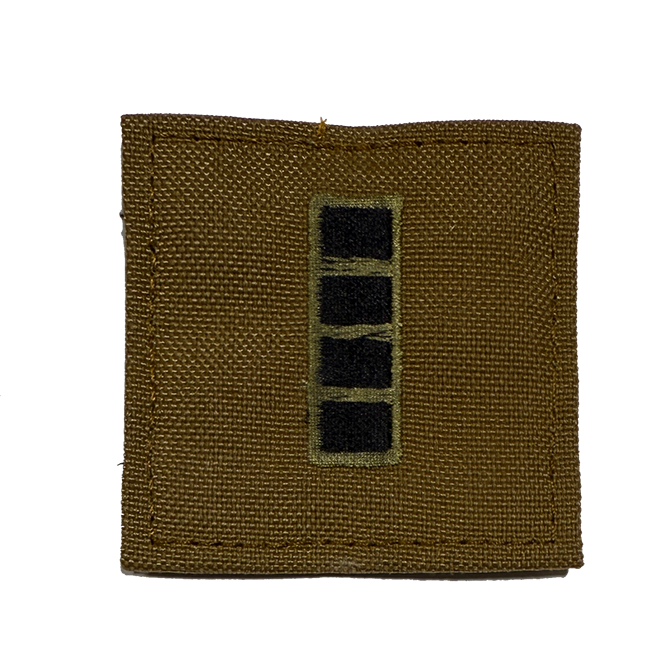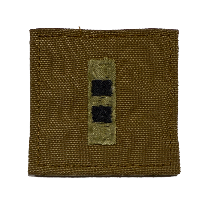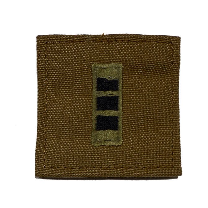 UPDATED Georgia State Defense Force rank patch on CYOAT fabric with hook backing. 2" by 2" Army rank patches on Velcro backing, worn on the Army Combat Uniform Coat or ECWCS Gen III Fleece Jacket.