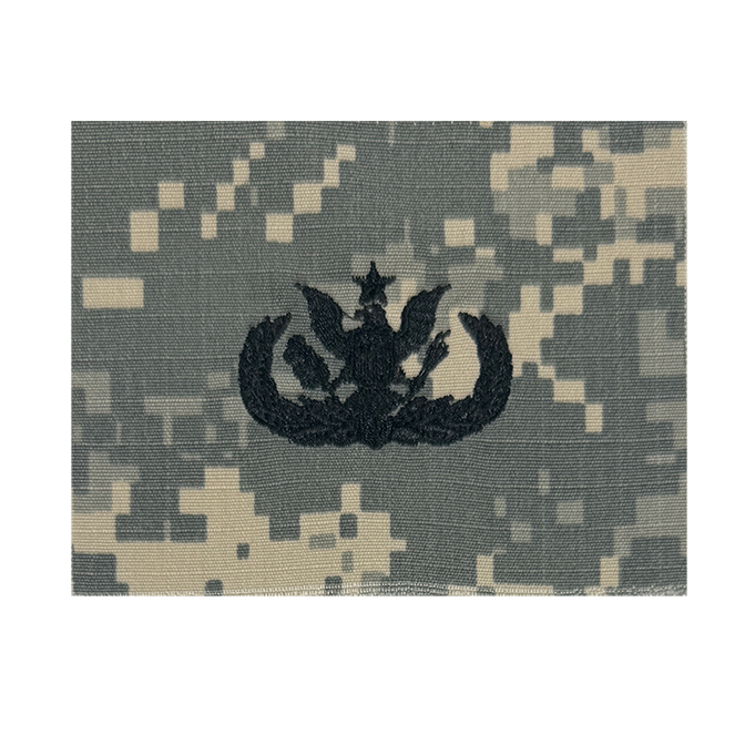 Embroidered qualification badge on UCP (digital ACU) cloth; meets all AR 670-1 & DPAM 670-1 regulations.